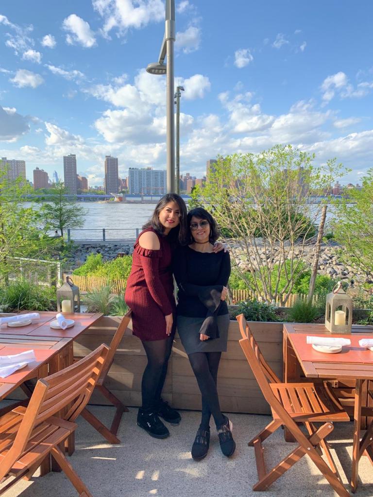 Dr Rachna and Aradhna at Brooklyn Bridge, NYC. They treat patients together across the world, where they help people reduce ageing, recover from pain, disease and poor mental health.